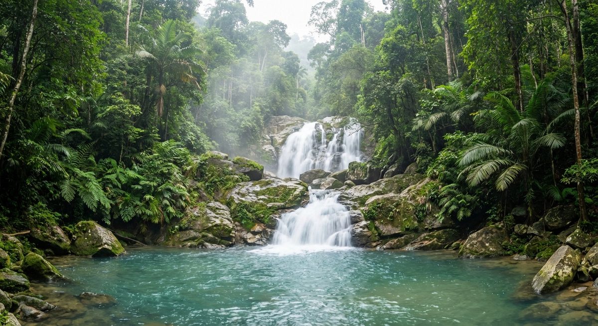 Laluan trekking ke air terjun ini melalui hutan tropika yang lebat dengan bunyi sungai yang mengalir. Kolam semula jadi di bawah air terjun menawarkan tempat berendam yang menyegarkan.